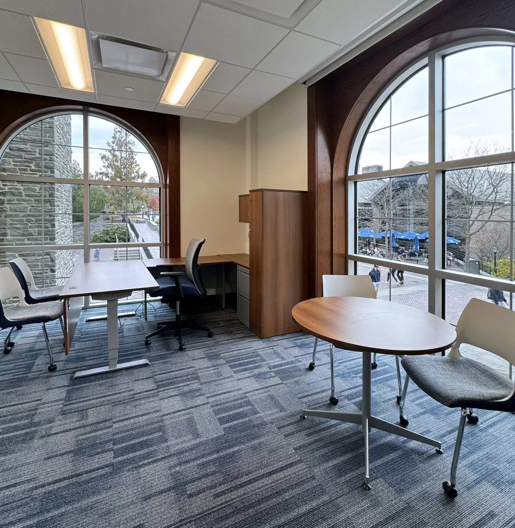 As part of the sustainable design strategy, the original stone walls were insulated from the interior, and acoustic treatments were integrated throughout to support privacy needs. The Center for Graduate Research and Education exemplifies CICADA’s expertise in educational architecture and sustainable adaptive reuse—bringing new life to a legacy building while meeting the evolving needs of Villanova’s graduate community.